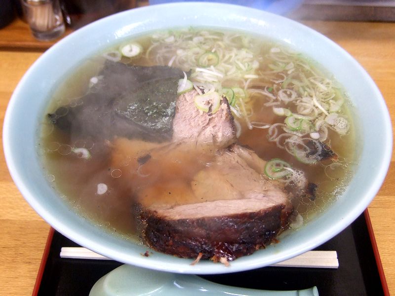 というわけでその大盛りですが、丼デカっ!!ノーマルとの差額は100円なんですが、そのわりに量が増えた印象です。で、まずはスープからいただいてみると、今回のスープはこれまでこちらでいただいた中で一番アッサリめというか、普段以上にライトに感じました。ただ、チャーシューは、相変わらず絶品。今回は調子に乗って1枚追加してしまいましたが、いくら食べてもちょっとやそっとじゃ無くならないって、とっても幸せですね。それと、今回は途中から卓上のショウガ入りラー油を投入してみたのですが、これが結構合っていて美味しかったです。また、身体も余計に温まりますね。