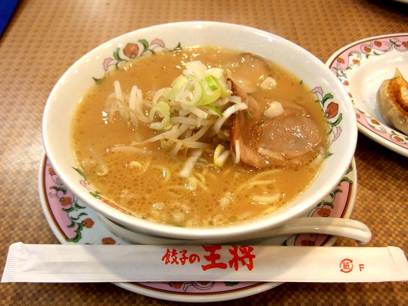 で、王将ラーメンは、お品書きにも豚骨ベースと書いてあり、見た目も白濁したスープ結構手強そうだったんですが、実際にいただいてみると、わりとあっさりというか。具のモヤシと相まって、サクっといただけますね。