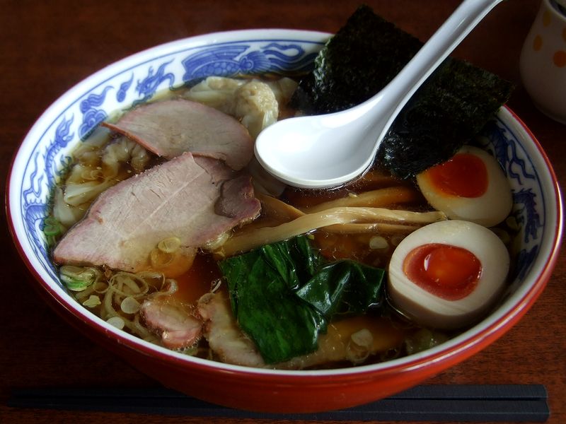 焼豚ワンタン麺 1030円 + 半熟煮玉子 100円