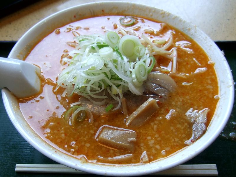 あと、同行者のみそら~めんも味見させてもらったのですが、豚骨スープに結構多めな背脂が加わり、こちらも結構なまろやかさ具合。ただ、みそごまら~めんと違い、結構ハッキリとした辛みが加わっていました。