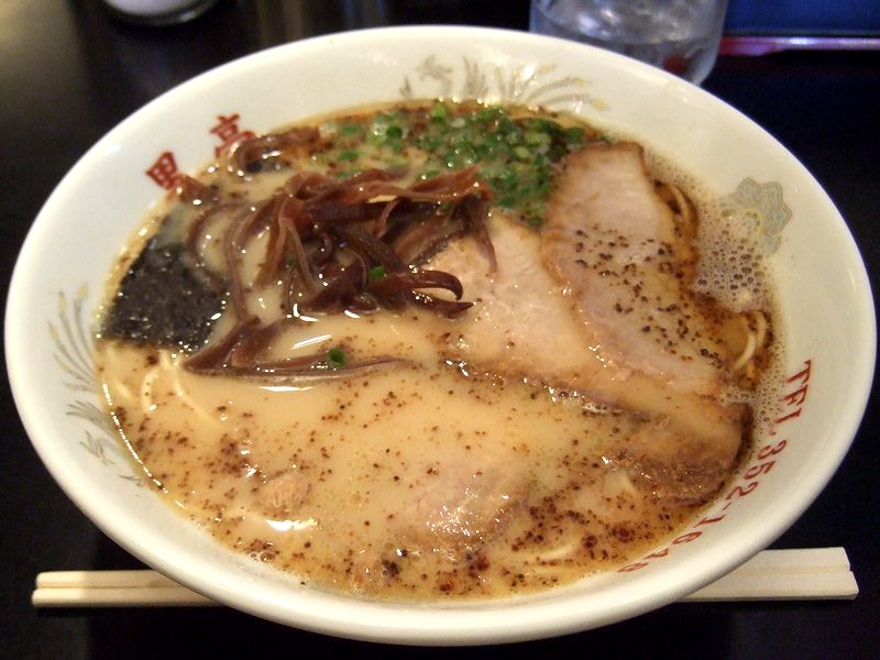 で、空いてたカウンター席に座り、ラーメンをいただいたのですが、やっぱり美味しかった!スープは、濃すぎず薄すぎず、ダシもタレもなんともいい塩梅。またダシには豚の頭を使用するとのことですが、それにもかかわらず、嫌なくどさが全くないですね。それと麺は、中くらいの太さの、コシのあるストレート麺。あと具のチャーシューは肉の味と歯応えの楽しめるタイプで、他に、キクラゲの千切り、青ネギ、海苔。そしてこれらが、熊本ラーメンの特徴であるニンニク風味(ちなみに、こちらのお店ははマー油というより、微細な揚げニンニクを使用していました。)によって、何とも絶妙にまとまっていました。