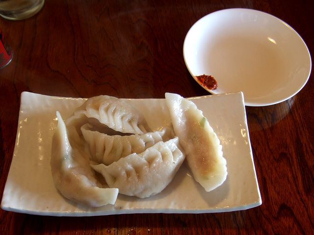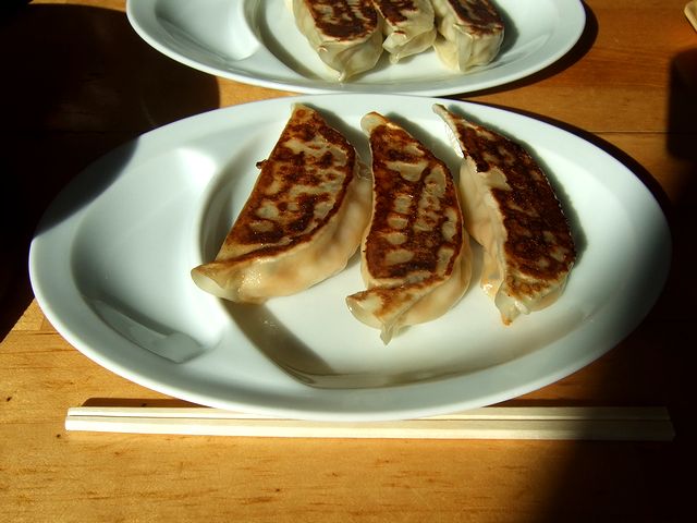 それから、一緒にいただいた餃子は、お勧めのとおり、付属の唐辛子味噌+お酢で。茹でたてアツアツで、モチッとした厚めの皮と、あっさりしてるけどしっかりとした餡が、これまた美味でした。