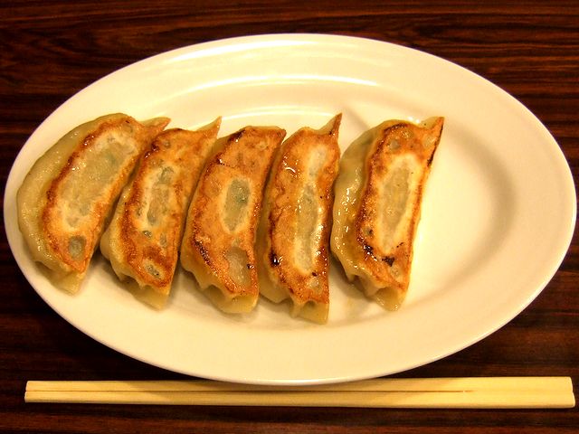 まず登場した焼餃子は、何ともスタンダードというか。大きさは中くらいで、焼き目以外はしなっとした皮に、わりとジューシーで柔らかめの餡の組み合わせ。で、お味の方は、酢醤油+ラー油を付けて丁度良く感じました。わりといけますね。
