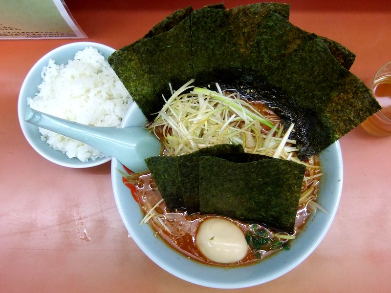 この日は、大雨のなか外に出ていたので、パンツまでぐっしょり。身体も芯まで冷えてしまい、そんな時は、こちらの辛味噌が恋しくなるわけでして。というわけで、濡れた服を着替えた後、クルマを飛ばしてお伺い。いつもの辛味噌ネギ+半ライスに、今日は味付卵とのり、そして風邪予防のおまじないでネギ増しと、豪華にいただきました