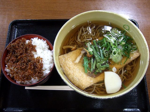 で、まず、京風大あげそば。寝ぼけた頭でいただいたこともあって、お味の方は特徴的なところは感じませんでしたが、具がお揚げさんの他に山菜も載っていて盛りだくさんでした。それと、ちりめん山椒御飯は、器は小さめながらみっちりとご飯が入ってというか詰まっていました。上に載ったちりめん山椒を御飯に混ぜつつ、とりあえず半分程そのままいただいた後、残りは、給湯器からお茶を持ってきてお茶漬けにしていただいたところ、大変おいしゅうございました。