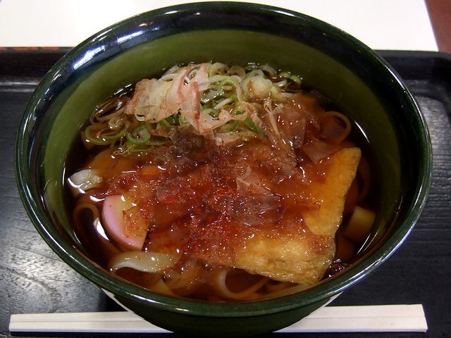 3時間半ほど前に多賀SAで京風大あげそば定食をいただいたにもかかわらず、また…。何ていうか、自分の食欲が怖い今日この頃だったりするのですが、先程いただいた後、一眠りして移動を再開したら小腹が空いたことに気がついたので、とりあえず、尾張一宮PAにピットイン。で、尾張一宮=「尾張名古屋は城で持つ」=「名古屋ならきしめんだろう」という安易な発想できしめんの食券を購入したのですが、一般的なきしめんには結構な確率でお揚げさんが入っているのをすっかり忘れていまして、昨晩から油揚げの入った麺3連食となってしまいました。
