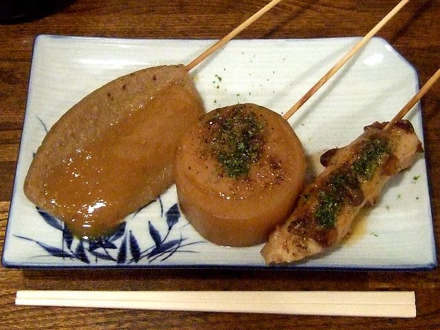 それとおでんは、昔お伺いしてた時はなかった気がする(気がついていなかっただけ?)のですが、今回初めて。で、黒はんぺんや大根など3本ほどいただきましたが、どれも味が染み染みで、味噌だれや魚粉、青海苔もいい感じに合っていて美味しかったです。