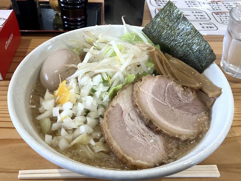 ちなみに、今日のお目当ては背脂煮干ラーメンですが、トッピングをどうしようか、半ライスも付けようか迷ったものの、結局のところ今回は、いつもの味玉と温野菜という見合わせになりました。