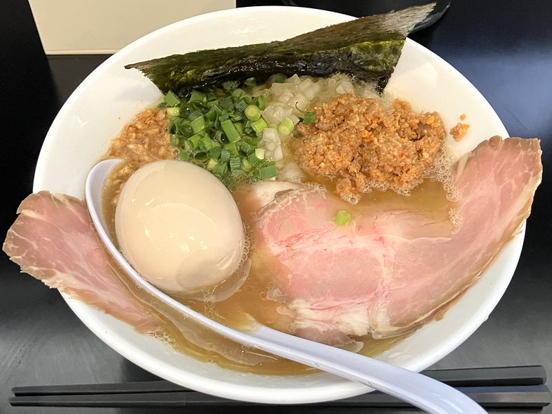 最近、何かにつけてそばばかり食べている気がしますが、用事があってお昼またぎで中抜けする予定だったこの日は、ラーメンが食べたい気分。で、時間に余裕はあるので、どんなラーメンを食べたいか、我がアタマとオナカに訊いたところ、「煮干し醤油に背脂だな」との回答があったような気が。