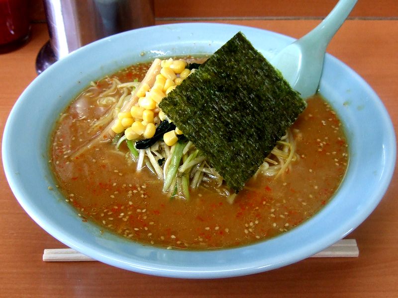 それと、同行者のを分けていただいた辛味噌ネギラーメンは、唐辛子のストレートな辛さが印象的。中辛にもかかわらず、個人的にはヒリヒリを通り越しヒーヒーという感ですが(辛いものは、割と得意な筈なんですが…。)、逆にそれが良かったりして。具は、ネギラーメンのに加えコーンが追加されますが、このコーンの甘さがホッとさせてくれますね。それにしても、中辛でこれだと、個人的には激辛(ご丁寧なことにお品書きの激辛の文字の横には括弧書きで「地獄」と書いてあります)は無理かなぁ。