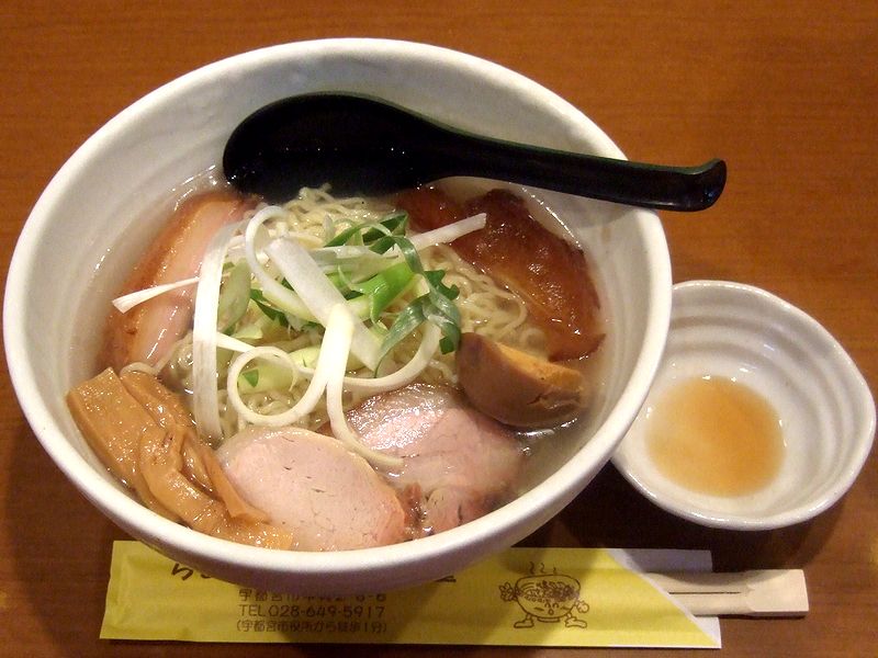 で、その、冷たい鮎らーめん。見た目は、油の浮かない淡い色のラーメンといった感じで、また、ラーメンの入った丼と共に、鮎で作った魚醤の入った小皿が添えられ、店主さんからは「半分くらい召し上がったら入れてみてください」との説明がありました。まず、スープからいただくと、うっすらとした鮎の香りに、奥ゆかしい旨味が。こちらのメインである鯛だしのラーメンは、麺やスープを口に入れるたびに感じる華やかな鯛の香りが好きなのですが、こちらは対照的に、冷たいせいもあって積極的に香ってくると言うよりも、こちらから探るよう感じる、落ち着いた香りが特徴的です。また麺は、ゴワっとした食感のの細縮れ麺で、冷たい麺ならではのシコシコ感とかは感じないのですが、これが逆に、奥ゆかしい感じがするスープと合っているような。それと具の煮卵やメンマは相変わらず美味しく、白美人ネギも食感が柔らかく味的にもいいアクセントになっている気がするのですが、さらに、素晴らしいチャーシューが、落ち着いた感じのラーメンに『華』を加えてる気がしました。そして、半分ほどいただいたところで、別添えの魚醤を投入してみたところ、魚醤の香りとコクのある味が加わって、先程とは全く別のキャラクターに変化!!先程とは反対の、こちらから探らなくても、積極的に感じさせてくれる味になり、残りのラーメンとスープを一気に完食してしまいました。