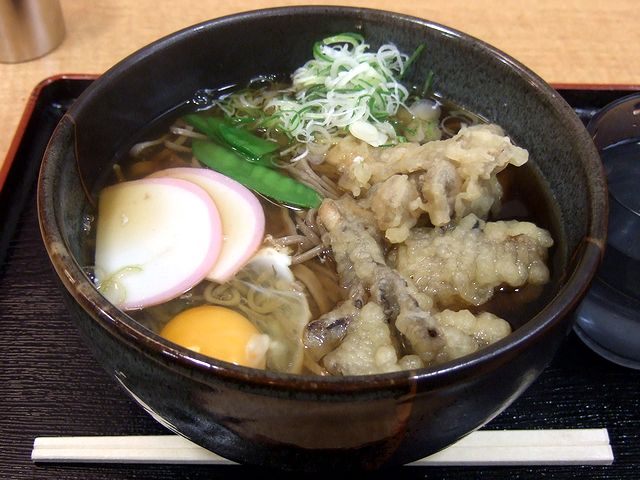 少し前、(小庵喜多さんの)新幹線コンコース内の2号店でいただいたのですが、今度は東西自由通路内にある1号店で。それにしてもこちらは、ホームにある『野州そば』と比べて、圧倒的にメニューの数が多いですねぇ。かけ、月見、きつね、たぬき、なめこ、山菜、めかぶ、とろろの他、天ぷら系にいたっては、天ぷら(かき揚げ)、天玉、いか天、舞茸天、海老天、特上海老天、それに、このあたりでは珍しいごぼう天まであり、おまけに夏季はそれらの冷やしメニューまである模様。そんな中から今回は、舞茸天そばを大盛り生玉子入りでいただきました。