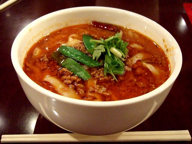 この日は、横浜に所用があり、そのついでに横浜駅近くのヨドバシカメラに寄ったのですが、買い物を済ませた後ちょうどお腹が空いていた時、ヨドバシカメラの地下にあるこちらのお店を見つけ、看板に書かれた『刀削麺』という言葉に誘われ、ついフラフラっとお伺いしてみました。で、いただいたのは当然の事ながら刀削麺を使ったマーラー(麻辣)麺。ちなみに同行者も、刀削麺を使ったサンラー(酸辣)麺をいただいていました。