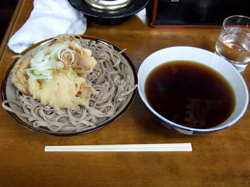 というわけでその大冷し。手打ちされるソバは、気取らない田舎ソバというかワイルド系。歯応えがあってうまいっす。それを、野菜のかき揚げをぶちこんだつゆに浸けて豪快にいただくと、これが何ともたまりませんなぁ。ボリュームもたっぷりで、お腹いっぱいになります。そして最後は、ソバ湯を堪能して締め。