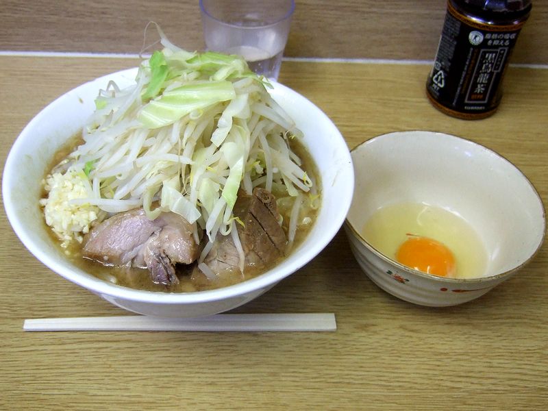 今年の1月以来の栃二郎ですが、行列の長さは相変わらずというか、以前より長くなってる気がするんですが…。で、今回は、ノーマルな小ラーメンを生たまごと共にいただきました。