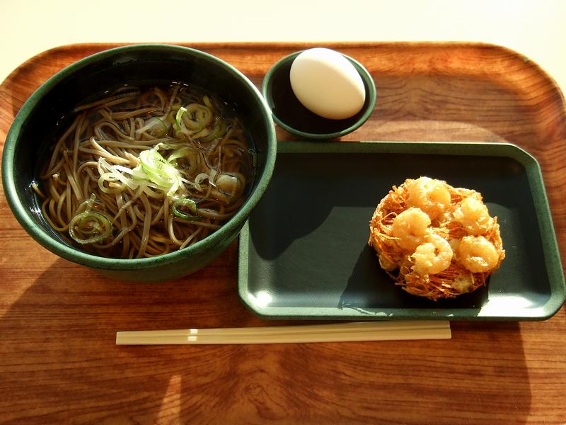 羽田空港にて、ANAの福岡行き始発便の搭乗を待つ間に朝食を。それで入ったこちらのお店は、カフェテリアのような方式というか、とりあえずそばかうどんを注文してから、トッピングやサイドメニューを選んで会計するシステム。そんなわけでそばの他、海老かきあげと生卵を追加したら、740円にもなってしまいました…。(それにしても、空港の飲食店って、私のような庶民にはお高く感じてしまいますなぁ。)