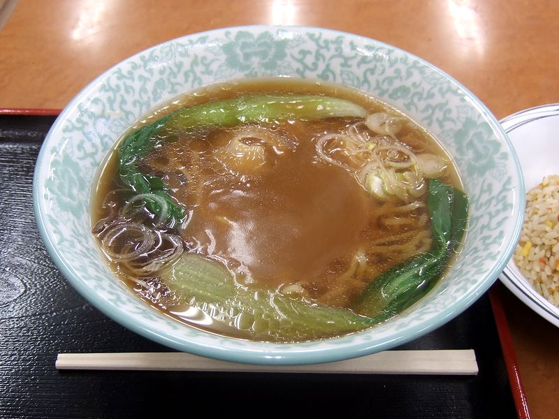 このお店のある下野市って、ここ暫く(それこそ年単位で)の間、行く機会が公私ともに全くと言って良いほどなかったのですが、この日は、珍しく仕事で行くことになりました。で、行ったからには是非とも有名なこちらでお昼でもいただこうと思っていたのですが、仕事の片づいた時間もバッチリで、午前11時過ぎにはお店に着くことが。駐車場にクルマを止め、入り口のところに並ぶと、すぐに後ろに行列ができたのですが、店内からは朝礼と思われる体育会系の声が響いてきて、それを聞きながら開店を待ちました。やがて時間になり、入店。店員さんに席に案内されると程なく注文となりますが、今回は、和だし醤油らあめんとちゃーめしのセットを。