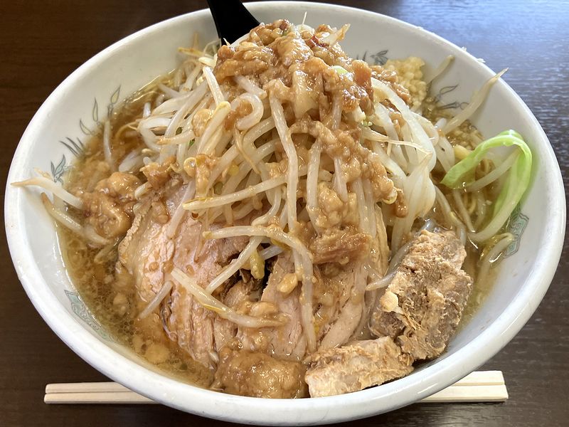 そして具は、ホロトロのバラチャーシューが白眉。柔らかいので、具のモヤシ(たっぷり)とキャベツ、更には麺と絡めていただくと、これが、また。加えてこの日はオマケ的わりと大きな肉片が入っていたのも嬉しかったですね。