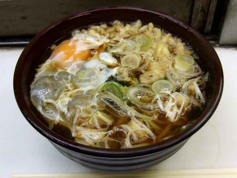 今を去ること二十ン年前。青春18きっぷを使った貧乏旅行にて、乗り換えの為に降り立った姫路駅でいただいた時にとても驚いたのがこちらの『えきそば』。つゆは関西風だったのですが、麺が中華麺のように若干黄色みがかった色で断面も丸く、食感もそれっぽかったので、「天ぷらそばを頼んだ筈が?」と、一瞬頭が???となりました。ただ、これがいただいてみると結構イケルというか、思い出の味になって、以降、姫路駅に来て時間がある時は必ずいただくようになった覚えがあります。