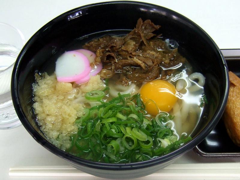 肉うどん 480円 + 生玉子 60円 + 稲荷寿司 150円