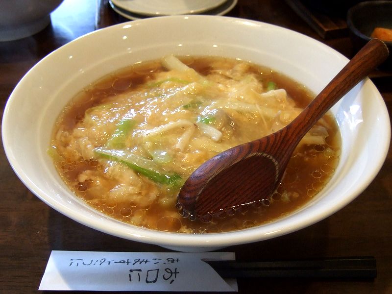 チャーハンをいただいていると、メインのとりそばが登場。そのとりそばは、地鶏だしの醤油ラーメンの上に、溶き卵、ネギ、白菜の入ったゴマ油が香るトロミの強い餡が載っていました。で、この餡が麺に絡んで、もう。登場した時は器の大きさ(肉みそや肉しおラーメンと同じ丼です。)にビビリがました(今回は色々頼んでしまったので、完食できるかちょっと心配になりました)が、気が付けば完食。これは美味しいなぁ。