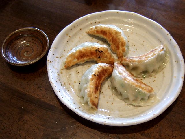 そしてとりそばをいただいている時、焼き餃子が登場。入り口の所に貼り紙がしてありましたが、以前の特徴的な満月形から、今度のは三日月形に形状が変わっていました。また、中身の餡も以前はかなり高密度だったような気がした(ただ、いただいたのがだいぶ前の話なので、勘違いしてる可能性もあり。)のですが、今度のはフワッと適度な密度感。お味の方は、野菜中心の餡がサッパリとして、いくらでも行けそうな気がします。