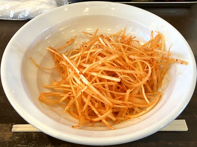 麺は、他のラーメン類と共通でしょうか。中くらいの太さで緩くウェーブがかかっており、食感は、ポニョっとした弾力とツルツル感が印象に残ります。