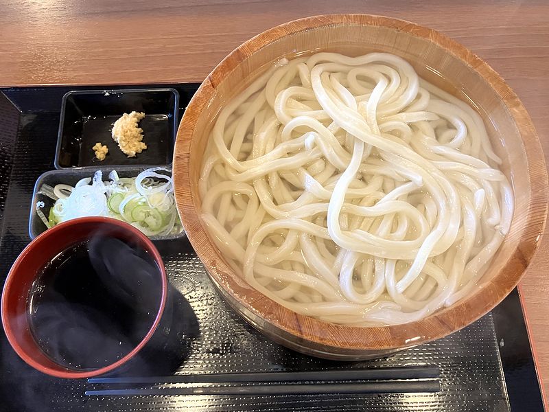 それで今回は、久しぶりに、釜揚げうどんをチョイス。ですが、注文の時にやってしまったというか、この日はたいそう空腹だったので、220円増しのうどん2倍盛りを注文しようと思っていました。でも、実際に注文口で間違って「特盛で」と言ってしまい、更にそのまま注文が通ってしまったという。で、その後会計となりますが、金額的には大盛の110円増しになっていたことに気が付いたのは、食べ終わってからというか、この記事を書くにあたってレシートを見直した時だったんですよね。