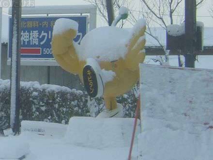 福島市内に入り、福島競馬場に行く時にいつも見ているキビタンも、今日はすっかり雪を被って何が何だかわからない状態になってました。