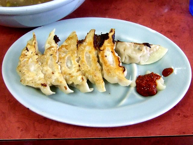また、久しぶりにいただいた餃子は、いつもの酢+ラー油+醤油ではなく、豆板醤+ニンニクでいただきましたが、この食べ方だと、味にパンチが効いてて良いですね。ただ、ラーメンに投入したニンニクと相まって、食後はニオイが…。(仕事中は厳しいですね。)