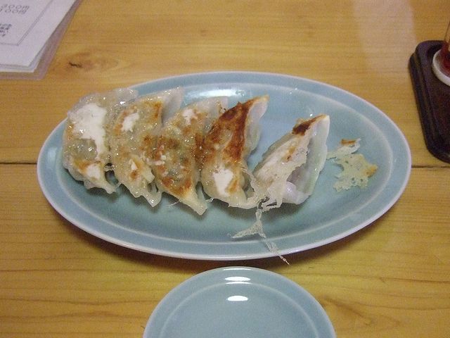 前回の訪問の際気になったのが、あの背脂で油通ししたネギが醤油味のスープと一緒になるとどうかということと、油通ししたネギの入らない塩スープの味はどうか、ということでした。というわけで今回の訪問が決まった時、「醤油味のネギラーメンか、ネギの入らない塩ラーメンか、どっちのラーメンが良いの?」となりましたが、結局今回は、醤油ねぎラーメンをいただくことに。あと、ぎょうざも一緒にお願いしました。