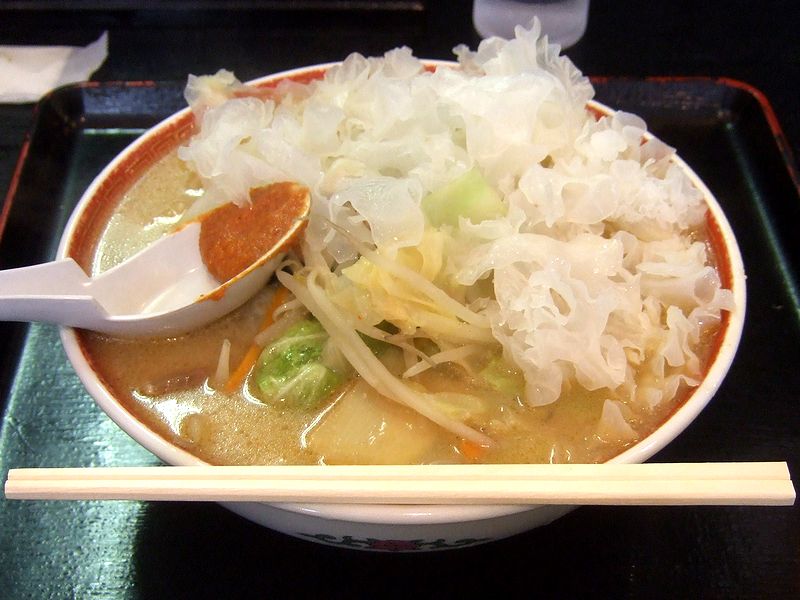 みそらあめんですが、見覚えのあるこんもりとした野菜の上に、トッピングの白きくらげが大量に。それでまずは、レンゲに付いた辛味噌は溶かずにいただくと、あっさりとした中にも、味噌や野菜の旨味が溶け込んだ優しい味。途中から、徐々に辛味噌を溶いていくと、その優しい味に唐辛子やニンニクを始めとするスパイス類のパンチが加わっていきます。麺は、それほど主張が強い訳ではありませんが、ツルツルシコシコ感あり。上に載せられた野菜は、キャベツ、モヤシ、ニンジン、タケノコ、キクラゲ、フクロタケなどがたっぷりと。トッピングの白きくらげは、それ自体に味は有りませんが、歯応えが楽しいですね。ボリュームもたっぷりで、一杯で、心も体も満足いたしました。