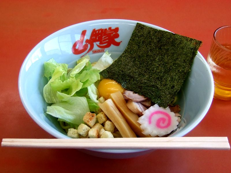 次に、味見させて貰った冷し中華ですが、まず、タレから魚の風味がしたのにはびっくりしましたが、その、魚系のダシが効いたタレが美味しかったです。冷し中華では珍しいレンゲが付いていたのは、ひょっとして、タレをいただく為でしょうか?麺は硬めでツルツル。具がシンプルな分、麺とタレの味を堪能できる気がします。また、芥子の他にマヨネーズが添えられていたり、天盛りに細切りの海苔が載っていたりする(両方とも結構合いますね)のが珍しく感じたのですが、こちらのほうでは当たり前なんでしょうか?