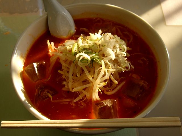 で、こちらのお店にお伺いした目的は、トマトずくし(「づくし」ではなく「ずくし」)ラーメンというというものがあると聞いたからなんですが、入店してメニューを見ても、無い!なので店員さんにお伺いしたところ、「冷し味噌が始まったので、トマト終わっちゃったんです。」とのこと。また、もう少し経つと、冷しトマト(ラーメン)というのがメニューに加わるそうですが、当地に滞在できる明日までではどうしようもないので、今回はその、冷し味噌をいただくことにしました。