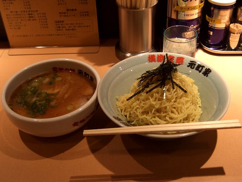 この日は、宇都宮市の外れでの所用を済ませて、電車で東武宇都宮駅まで戻って来たのですが、丁度腹が減ってて、吸い寄せられるようにお伺いしました。で、いただいたのは、こってりスープつけそば。そういえば、家系のお店でつけ麺というのは、結構珍しいと思うのですが。ちなみに、こちらのつけ麺系メニューですが、麺が太麺(つけ麺)と細麺(つけそば)、スープがこってりとあっさりから選べる仕様(というか、別メニューで4種類)になっております。