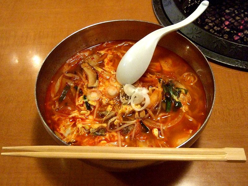 注文してしばらくすると、味噌チゲらーめん・ごはん・漬物の他に小皿と、特製のお酢が一緒に運ばれてきました。お酢には唐辛子やニンニクが漬け込まれており、店員さんによると、お好みで小皿にとってから(そのお酢を)かけてお召し上がりください、とのことです。それで早速、味噌チゲらーめんを最初はそのままいただいたのですが、噂以上、想像以上のこだっこさにビックリ。スープにトロミが、というより、ドロドロの半固形状態。でもこれが美味いんですよ。ツルツルシコシコの麺と絡みまくりで。辛味は(自分には)さほど感じませんでしたが、唐辛子のちょっとした刺激と、まろやかな味噌の味、そして具材やスープの旨味が渾然一体となって口の中に入っていきます。具は、豚肉、白菜、モヤシ、ニラ、ネギなどがたっぷりと。また、特製のお酢をかけても、サッパリ感とまろやかさが加わって、もう。そして麺を食べ終わった後、残ったスープをご飯にかけていただくと、これがまた。いやぁ、これはハマる味ですよ。また、強烈なトロミのおかげで、最後まで熱々でいただけるのもいいですね。