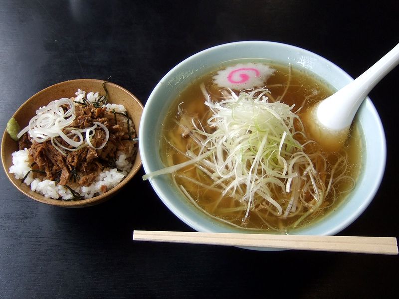 ネギらーめん 730円 + 蔵八セット(チャーシュー丼(小)と半ぎょうざ) 450円