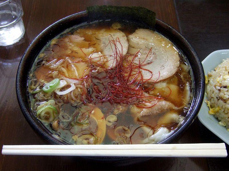 そのゼンジースペシャルは、まさに「スペシャル」!表面は、天盛りの糸唐辛子に、チャーシュウ(焼き豚も?)、ワンタン、煮玉子がの具が一面に載せられており、その下に親鳥(老鶏?)を使ったあんが隠れていました。それでまずはあんを混ぜずにいただくと、いつものごとく、濃厚だけど丸い、鶏と醤油の風味が。そして途中からあんを混ぜると、さらにコクが増したような気がしました。また麺は今回太麺を選びましたが、割とソフトな食感です。それと、天盛りの唐辛子が、全体的に風味を与えてますね。それにしても、これだけ具が載っていると、かなりボリュームがありますねぇ。あと、半チャーハンは、しっとりとした食感が、いかにも"ラーメン屋さんのチャーハン"といった感じで、味付けは結構ハッキリと。