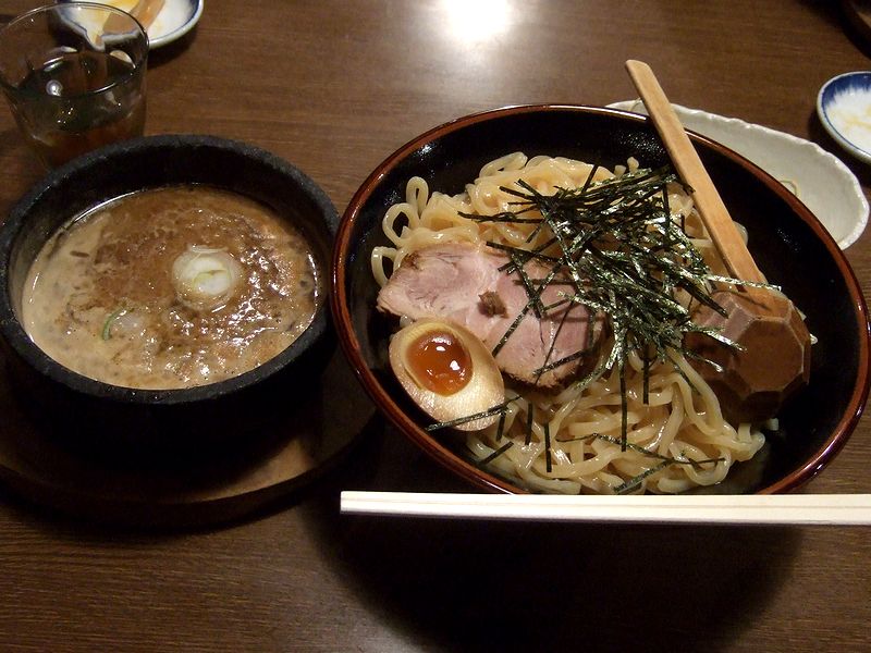 そんなわけで、辛ネギをつまみつつ生ビールを飲みながら待つこと暫しで登場した濃厚つけめんですが、だいぶ酔っぱらった舌にも、明確に"旨さ"を感じさせてくれます。付け汁は相変わらず濃ゆいし、極太麺はツルツルのシコシコ。更に、少し残しておいた辛ネギと一緒にいただくと、これがまた。最後は割スープをお願いして、残った付け汁を完飲。いやぁ、散々飲んでお腹はキツい筈なのに、やらかしてしまいました。