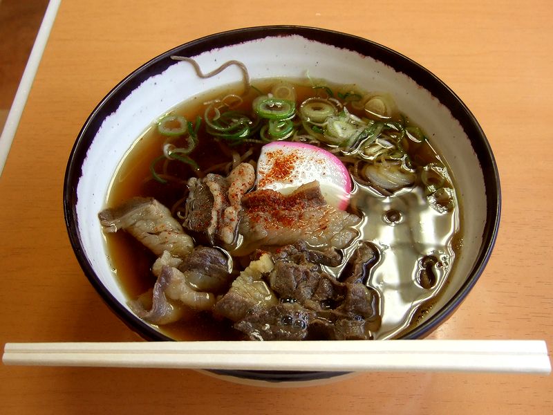 ヤキメシに夢中になっていると、中華そばが登場。こちらの中華そばが真っ黒なのは事前に知っていたましたし、中華そばの前に登場したヤキメシである程度想像はついていましたが、実物を目の当たりにすると、やっぱり、「く、黒い!!」でも、ヤキメシ同様塩分が強いわけではなく、こちらは醤油の旨味に加え、スープの旨味や、具のチャーシューの風味なども感じられ、脂の適度なコッテリ感もあります。麺は若干柔らかめの中太ストレートで、このスープとよく合っていますね。それから、薄切りのチャーシューが結構たっぷりと入りますが、これがまた適度な歯応えと、焼いたお肉のような食感や風味があって良いですね。そして更に、九条ネギとも相まって…。いやぁ、これも旨いです。
