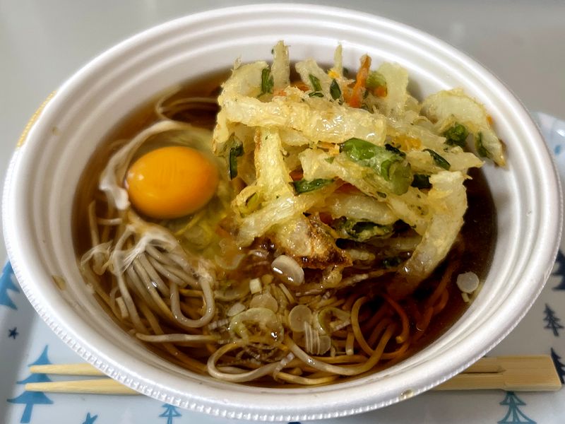 その後、少し待ってから登場したかき揚げそば+生玉子。