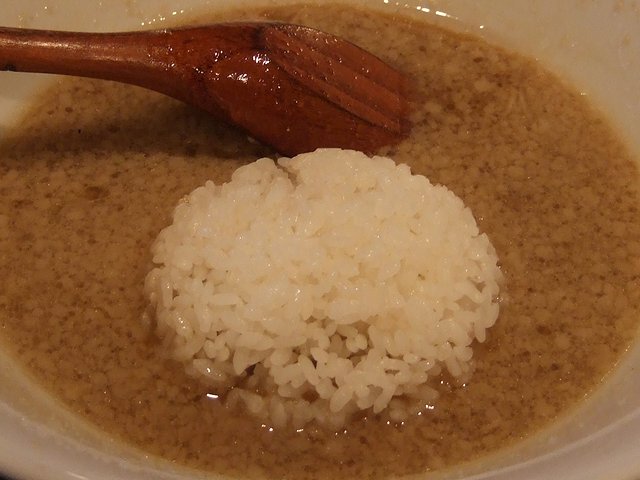 で、今回はこってりラーメンの中盛と半ライスをいただきました。久しぶりに(1年以上たべてなかったかも)いただいたこってりラーメンは、醤油味のスープに背脂がたっぷり。でも、これだけ背脂がたっぷり浮いているにもかかわらず、確かにコッテリ感はありますが、それでも全体の印象は、スムースandジェントルというか。背脂の凶悪さに任せた味というよりも、きちんとコントロールされた味に感じます。これも、美味しいですねぇ。中盛にした麺が、あっという間に無くなってしまいました。そして最後は、(今回ラーメンを中盛にしたので噴火めしではなく)半ライスを投入していただきました。