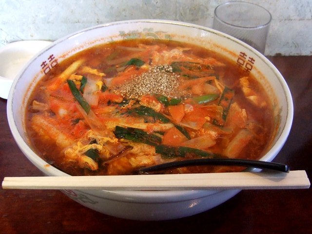 ラーメンショップのラーメンって、何故だかたまに、無性に食べたくなるんですよね。で、今回は、免許センター入り口のラーショへ。こちらはラーショのスタンダードなメニューのほかにも激辛メニューやお酢を使ったラーメン、豊富なサイドメニュー(おつまみ類)の他、コーヒーやトースト(ちなみに朝6時から営業してます)までありますが、今回はスタンダードなネギラーメンをいただきました。