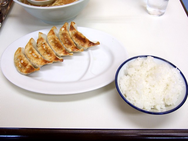 そのみそラーメンは、濃いめの味噌の風味に、多めに載せられた白ネギと、その下に隠れてるモヤシが合いますねぇ。また、スープには背脂のほかに、ゴマやニラが浮かんでいますが、それらがちょっとしたアクセントとなって、またいいです。サクッとした食感の麺や、とろけるチャーシュー、いい塩梅のメンマも相変わらず美味しくて。そんなわけで、たまには、みそラーメンもいいですなぁ。また、やや小振りだけど6個もある餃子は、薄目の皮がクリスピーで美味しいく、ライスにもラーメンにも合います。それにしても、お得なセットですねぇ。