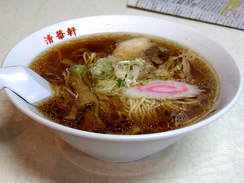 そのお店は住宅地の狭い道を入っていったところにあり、ラーメン屋さんではなく地元密着の中華料理さんといった感じ。店内の壁にメニューは貼ってなく、席に着くと、おしぼりと共にメニューの立派な冊子を盛ってきてくれました。それで、その中から(メニューが立派だったので気が引けましたが)一番(?)安いラーメンをオーダー。置いてあった『上毛スポーツ』(ちなみに1面の半分くらいを割いて、地元サッカーチームの監督交代を扱ってました)を読みながら出来上がりを待ちます。