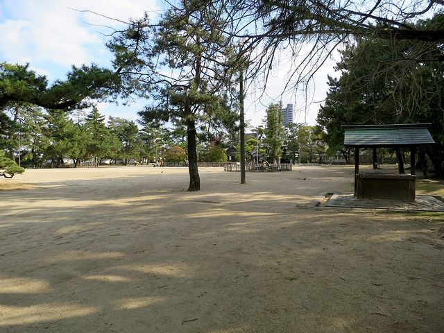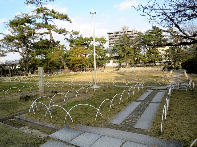 こちらは、藩主が居住した本丸御殿跡。もっとも、こちらに居住したのは二代藩主までで、三代藩主からは三の丸に建てた新たな御殿に澄んだそうです。ですが、表御殿はその後も行事などで使用された為、明治時代まで現存していたとのこと。