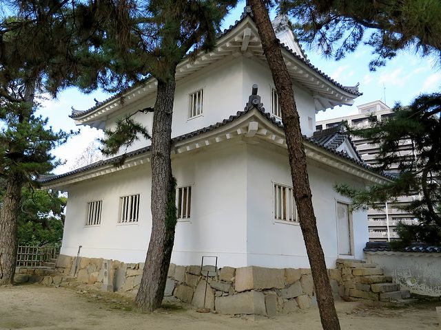 ただ、元々は芦田川河口域の田畑や湿地帯だったところを埋め立てて街ごと城を築くことは容易ではなかったようで、元和6年(1620年)には大洪水によって工事が中断されるなどしつつ、城が完成したのは元和8年(1622年)になってから。しかし、完成した城は天守は五重、櫓は三重櫓7基を含む20基以上というスペックは大大名クラスというか、幕府が以下に当地重要な拠点とみていたかが伺えます。更に総構の堀には、延宝4年(1676年)に石垣が築かれました。