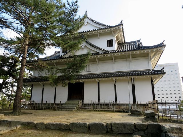 こちらは本丸内の(一部)現存建築物で、市の重要文化財である鐘楼。往時は多門櫓の一部が鐘撞堂となっていたそうなのですが、廃城後に鐘撞堂の周りの多門櫓が取り壊されたため、このような形で残ったそうです。ちなみに、午前6時、正午、午後6時、午後10時に自動で自動で鐘が鳴るそうなのですが、タイミングが合わず聞くことが出来ませんでした。