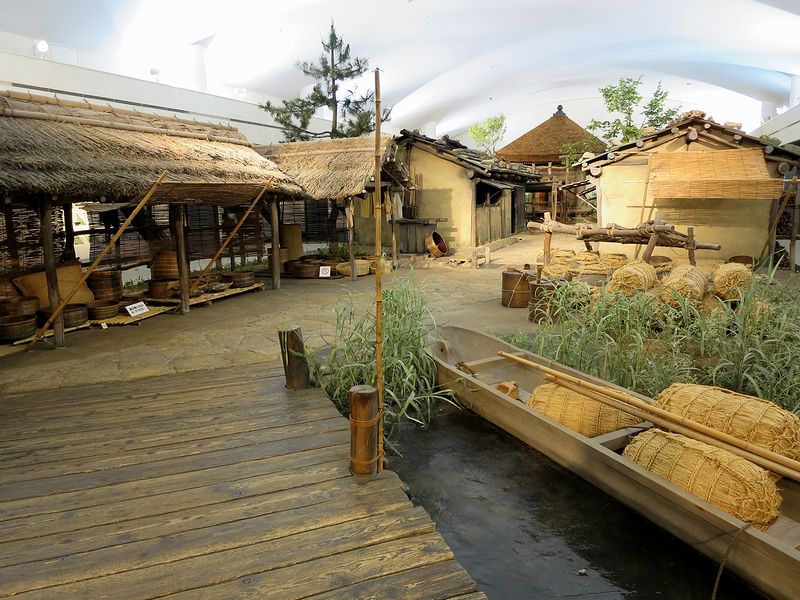 そのまま進むと、広島県立歴史博物館があったので立ち寄ってみることに。それで、ひととおり見学したのですが、中でも『よみがえる草戸千軒』と題された、中世の港町、草戸千軒を丸ごと再現した展示は、圧倒的存在感。これはすごいですぞ。