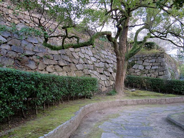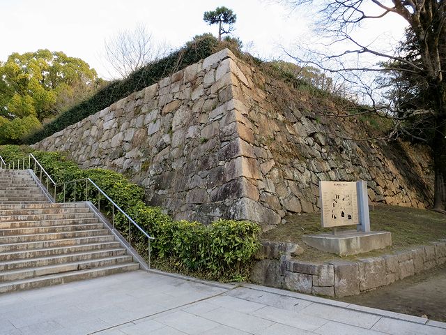 広島県立歴史博物館の東側にあった石垣。本丸西側にあたるんですかね。